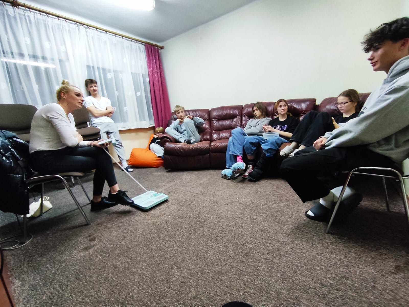 Wychowankowie aktywnie uczestniczyli w rozmowie, dzielili się swoimi nawykami oraz zadawali pytania dotyczące diety, wpływu jedzenia na cerę oraz sposobów na zdrowe odżywianie w codziennym życiu. Nasz gość udzielił praktycznych wskazówek, jak stopniowo zmieniać nawyki na zdrowsze.