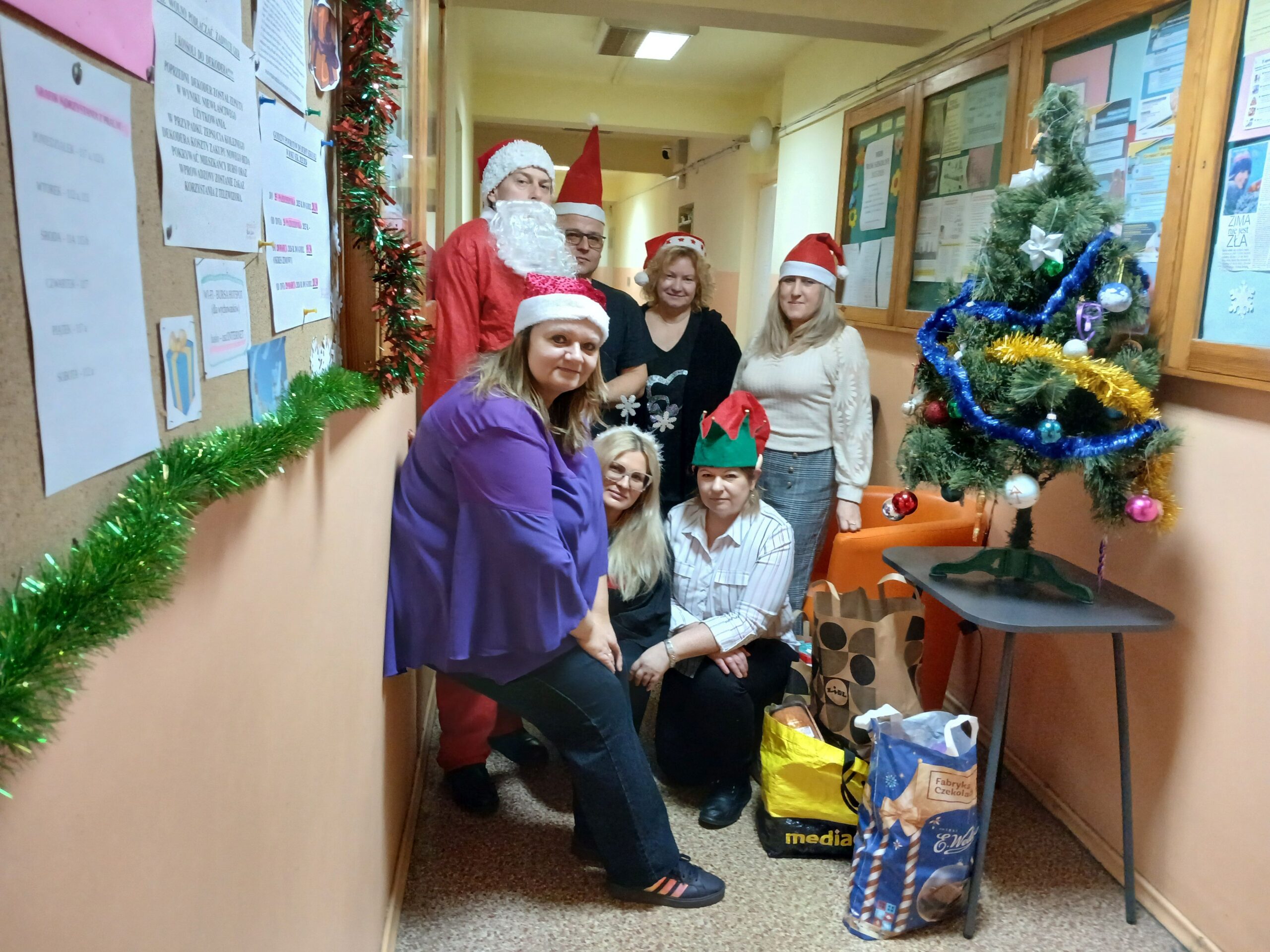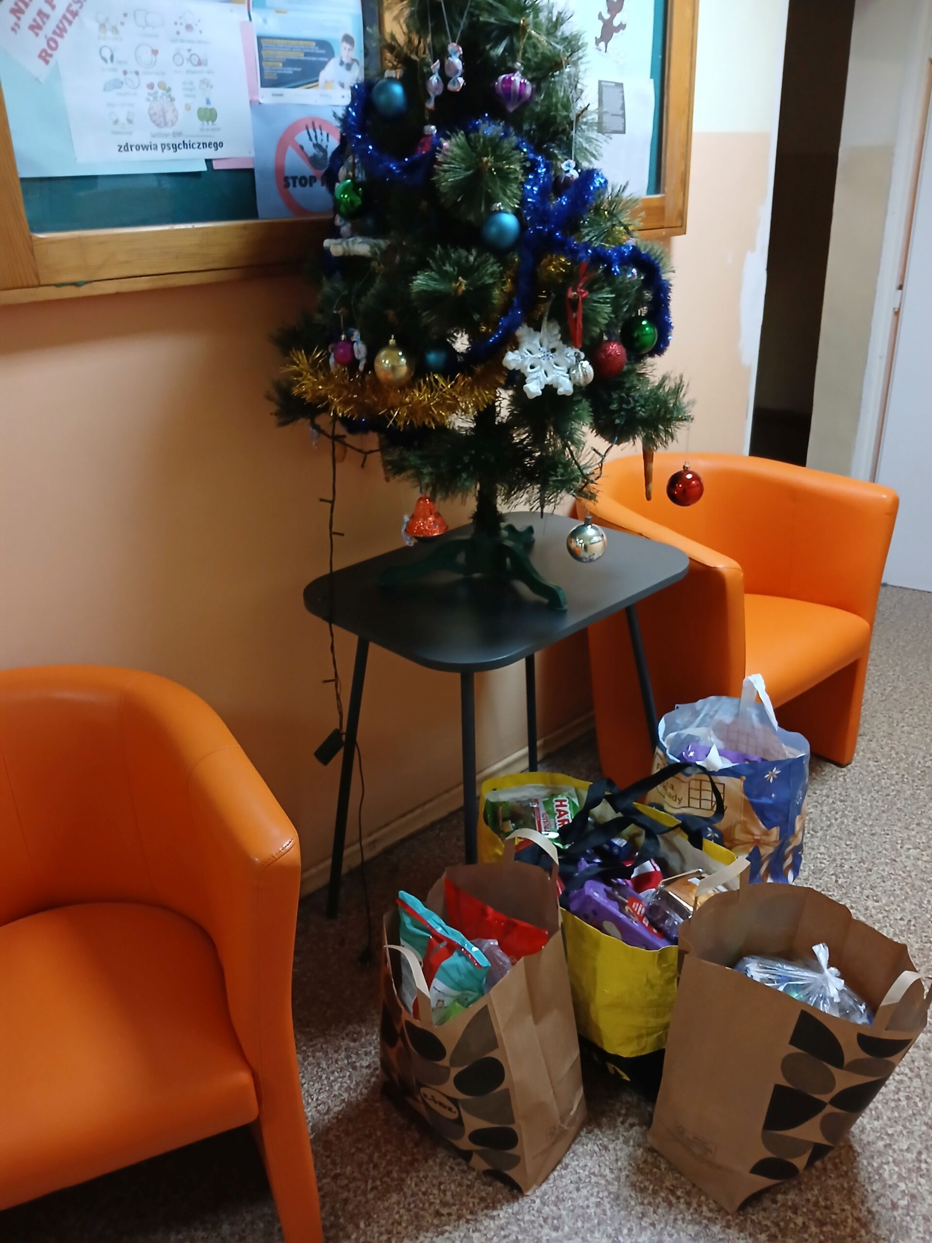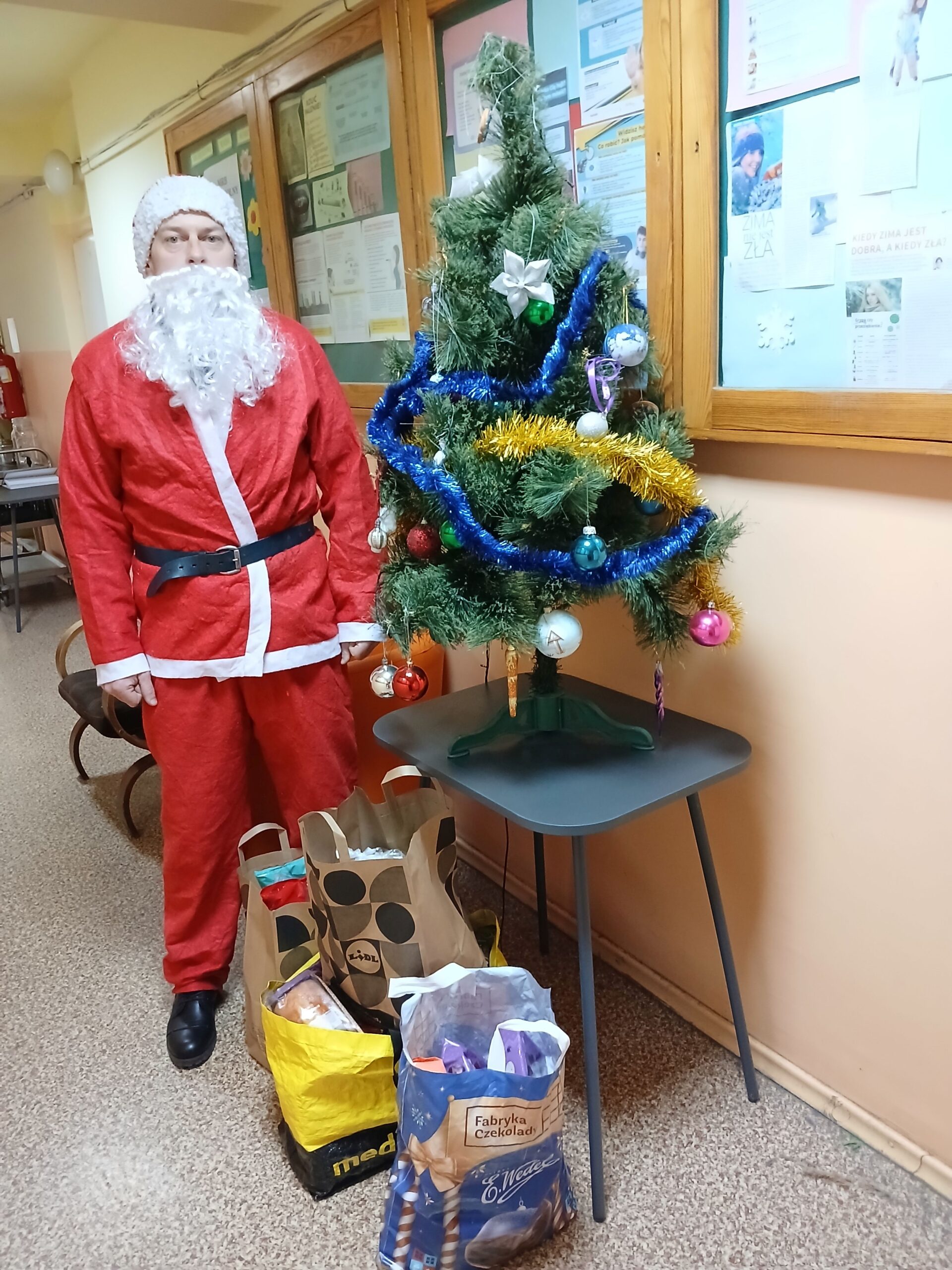 Jak co roku Młodzieżowa Rada Bursy zorganizowała strojenie choinki. W tym roku to nie bombki i łańcuchy stanowiły jej główny wystój, ale słodycze. Akcję „ Słodka choinka” zorganizowała młodzież pod kierunkiem Eweliny Spytkowskiej – opiekunki MRB. Wychowankowie ubierali świąteczne drzewko w pierniczki, maślane ciasteczka i cukierki, słuchając i nucąc świąteczne piosenki. Ale w tym dniu to nie była jedyna radość, bo potem można były degustować słodkości. No cóż, pewnie do Świąt ta piękna choineczka zostanie rozebrana ze smacznych ozdób. Ale właśnie o to chodziło w tej akcji. Słodkie pierniczki wykonane z młodzieżą przez wychowawczynię Małgorzatę Niewczas oraz mnóstwo innych słodyczy i owoców zostały przekazane przez Świętego Mikołaja i jego załogę do zaprzyjaźnionej Placówki Opiekuńczo – Wychowawczej. My też otrzymaliśmy od Nich słodkie upominki. Wychowankowie zadbali również o piękne kartki ze świątecznymi życzeniami.