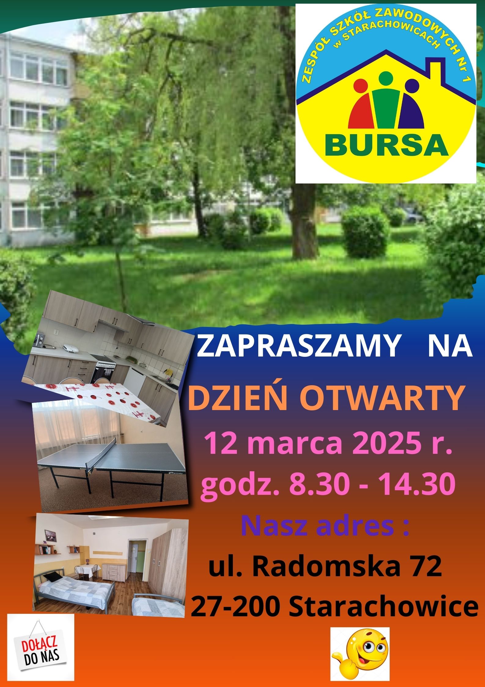 W dniu 12.03.2025 r. w godzinach 8.30 – 14.30 zapraszamy wszystkich ósmoklasistów spoza Starachowic do naszej Bursy, aby zapoznać się z naszą ofertą.